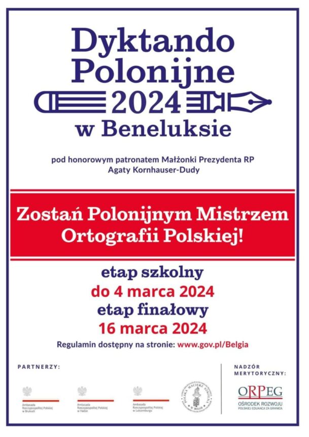 Nasza szkoła w tym roku ponownie dołączyła do „Dyktanda Polonijnego w Beneluksie” pod patronatem Małżonki Prezydenta RP Agaty Kornhauser – Dudy.